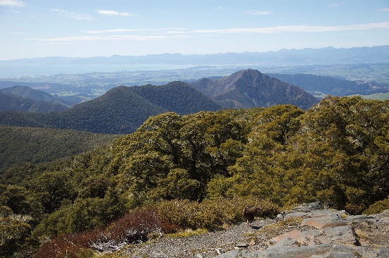 From here the views are 360 degrees, over Tasman Bay to the Richmond Ranges and Kaikoura Ranges, but also the ranges of Kahurangi National Park.