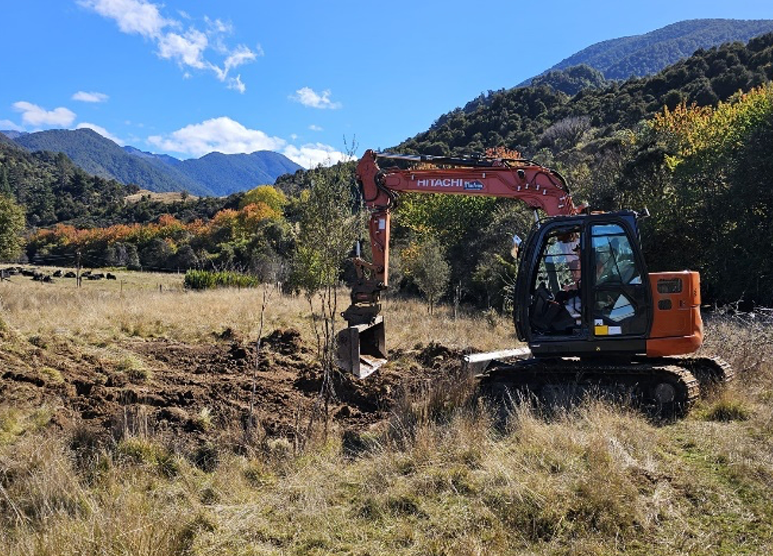 Monday 8 April was the day work started on the first wetland supported by the Motueka Catchment Collective, and I was off up the Baton Valley to capture a slice of the action.
