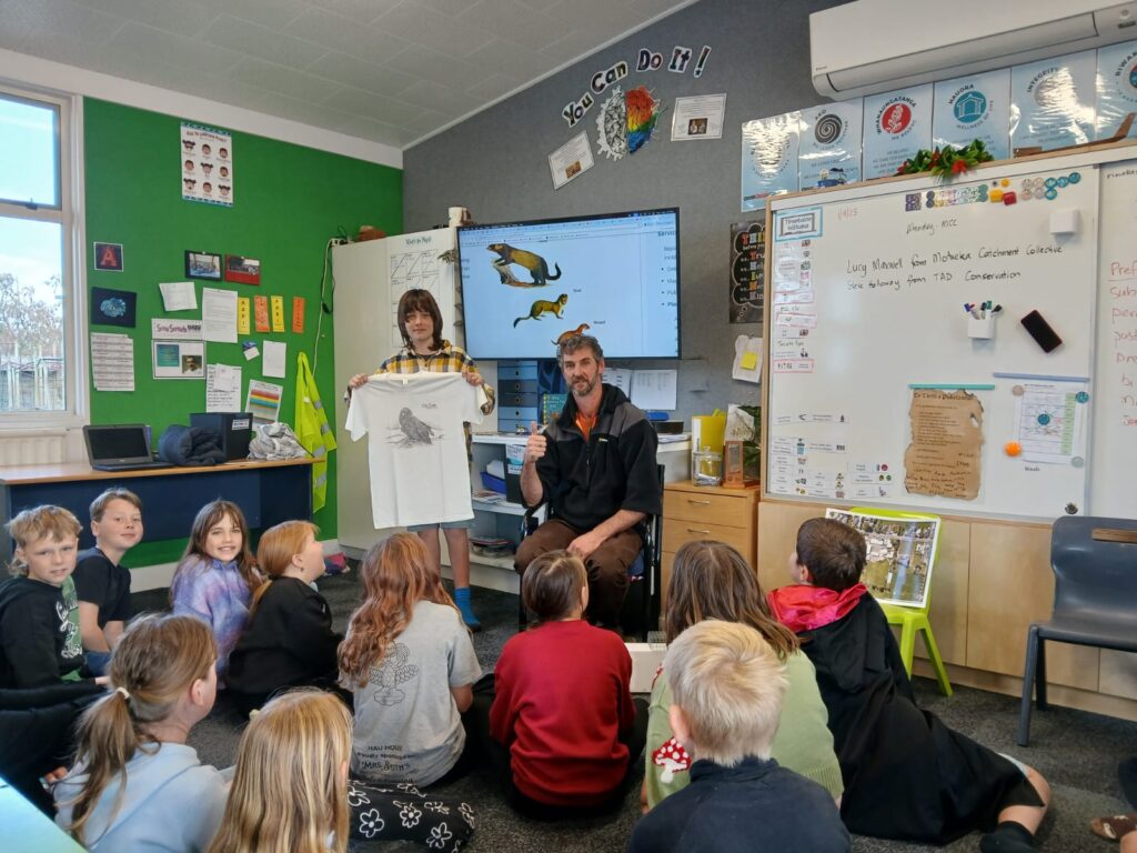 Steve also brought a t-shirt for Taane Mills, the most enthusiastic pest trapper in Ruma Puketāwhai , & Taane got a big round of applause for being such a motivated conservation leader.